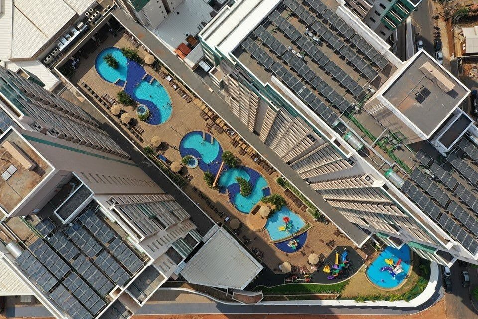 Acomodações Espaçosas: Conta com 912 apartamentos modernos, divididos em opções de 1 ou 2 dormitórios, com capacidade para acomodar confortavelmente até 7 pessoas.