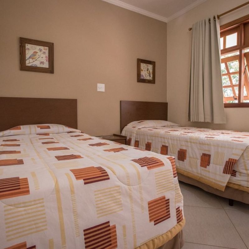 Acomodações Aconchegantes: As unidades de hospedagem são projetadas para oferecer o máximo de privacidade e descanso, com decorações que remetem ao charme do interior, garantindo noites tranquilas para toda a família.