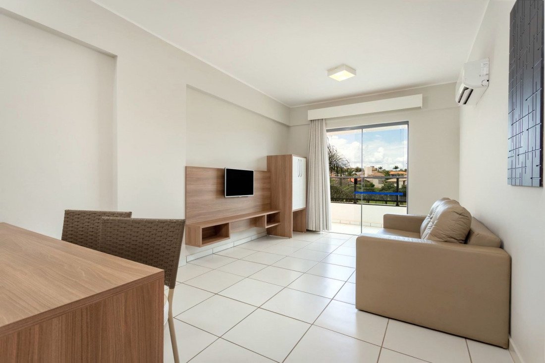 Acomodações de Luxo: Dispõe de 960 apartamentos modernos e amplos, equipados com ar-condicionado na sala e no quarto, TV a cabo, cofre digital e sacadas privativas com vistas privilegiadas.
